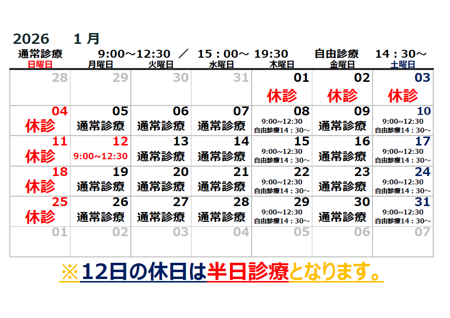 R8. 1月 診療日程のお知らせ