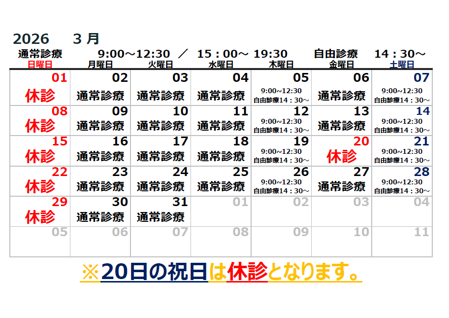 R8. 3月 診療日程のお知らせ